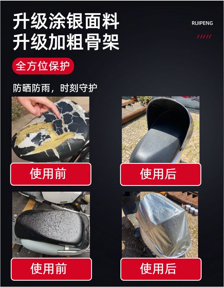 安装简单,使用方便,坐垫空间还能放头盔,以及收纳随手物品,一年四季保护坐垫防止开裂老化