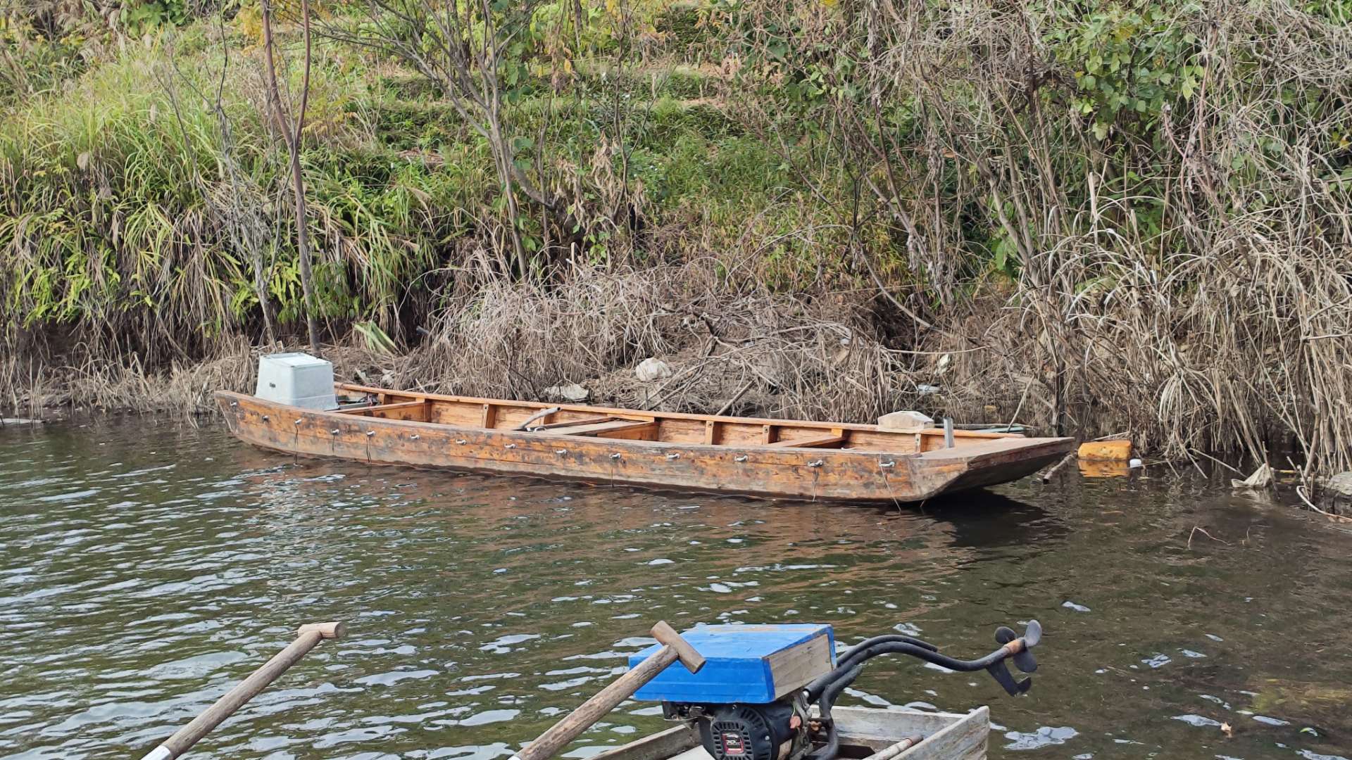 转让大木船一只,长度大概七八米,宽度两米左右,配有大功率机头,方便拉货,价格美丽,有需要的联系!