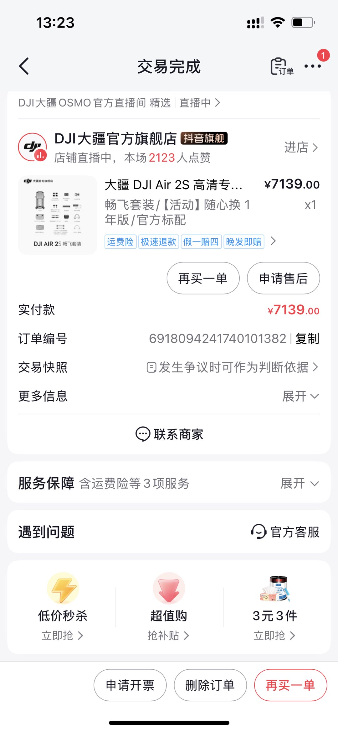 23年购买一手大疆Air 2S现便宜出售