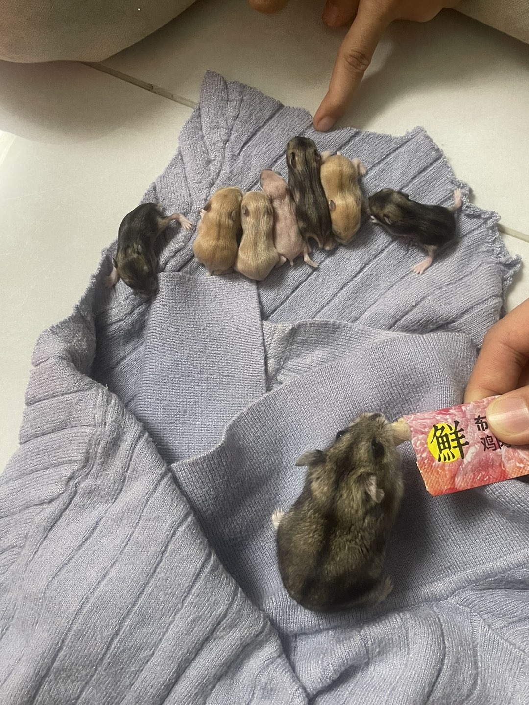 小小仓鼠繁殖太快了没地方养,还有两窝没到两个星期,八块一只寻