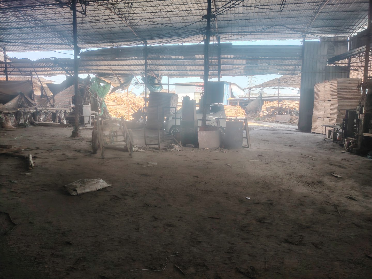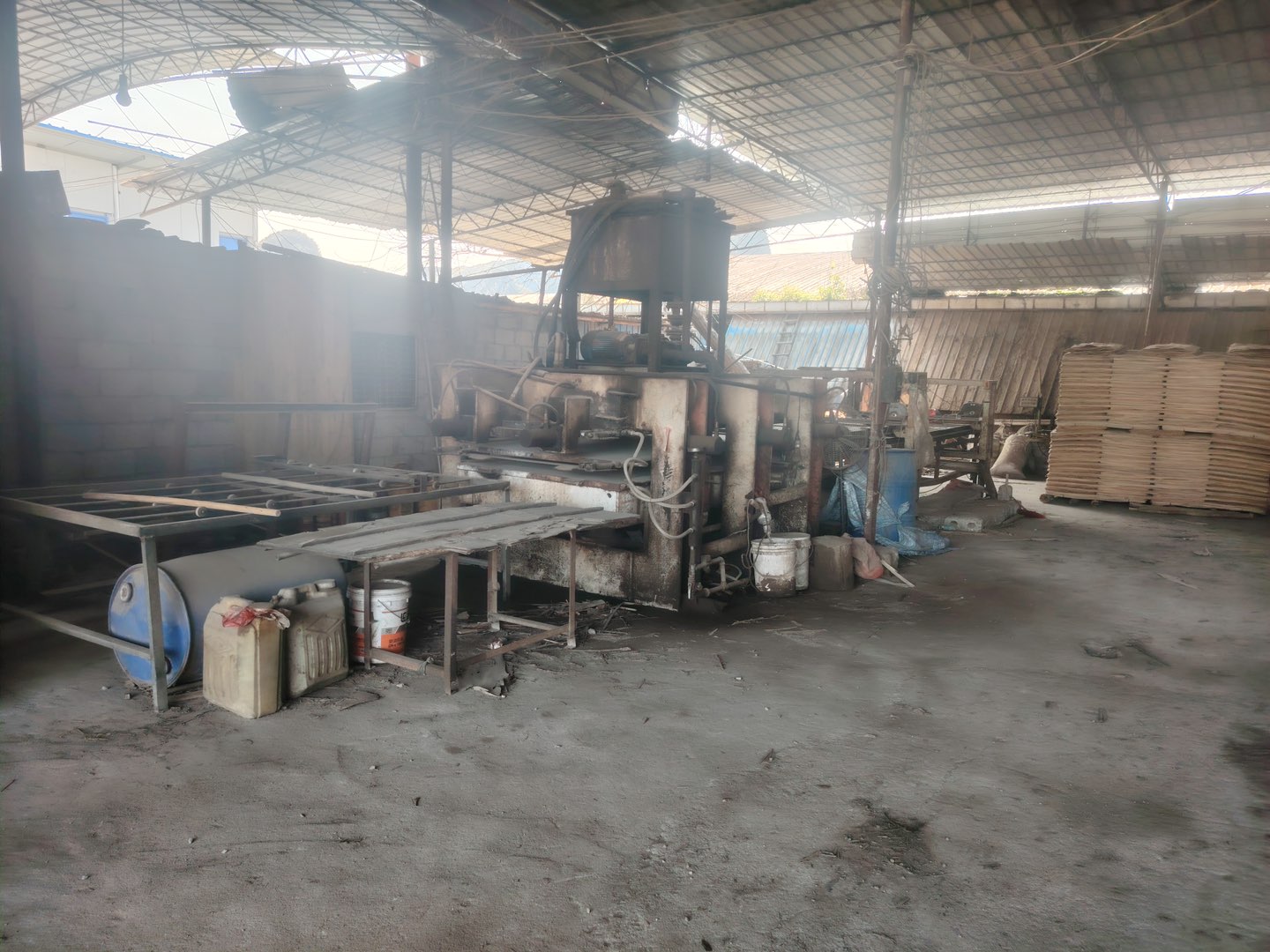 位于水泥厂附近厂房转让或出租,带有设备:压机、锅炉、梳齿机、多片锯、抽条、断料、叉车,接手可以盈利。