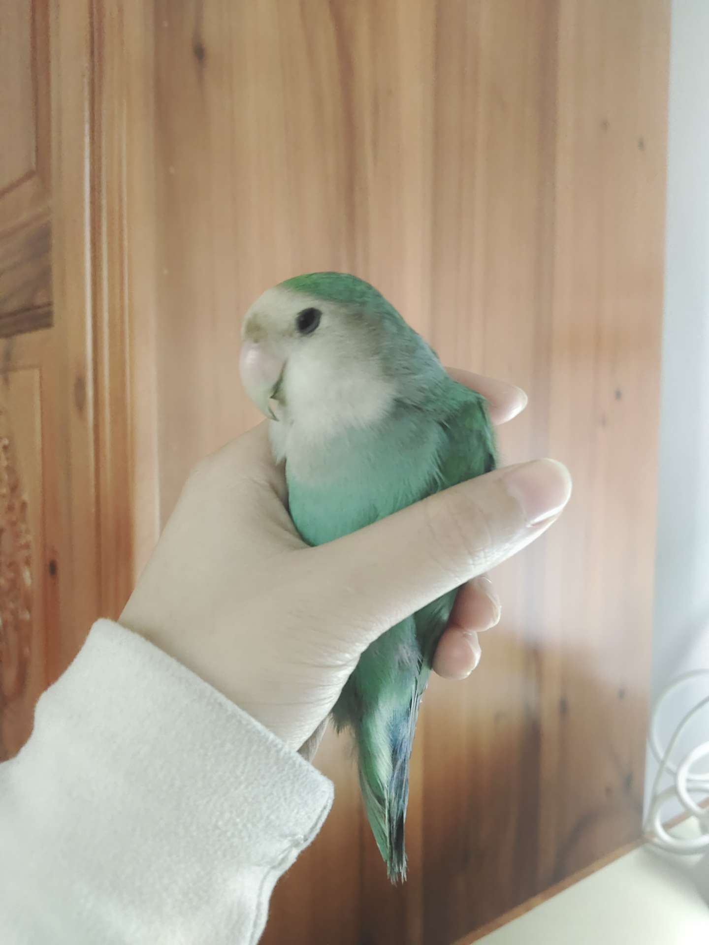 3.17下午六点左右丢失一只母松石蓝银牡丹鹦鹉,麻烦见到或者捡到的好心人联系一下我谢谢😭😭飞羽剪了三根,一只脚带有环,环上面有编号。从小奶到大非常黏人😭😭不知道是不是粘在身上丢的,估计在南校附近。麻烦好心人帮忙留意一下谢谢