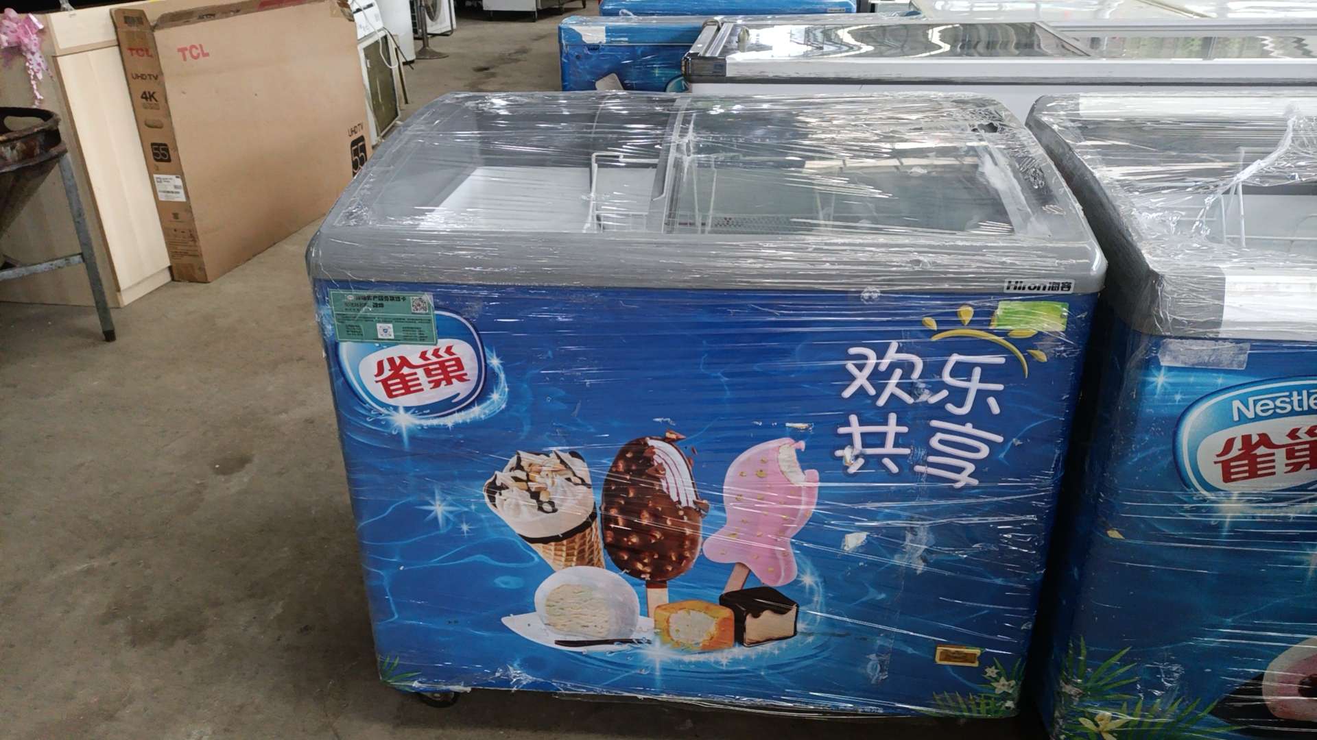 老铁们中午好,[烟花][烟花]九成新冰淇淋柜,1米:880,1.2米999,1.5米1280,饮水机58一128元,欢迎刚需的家人们来店捡漏[微笑]