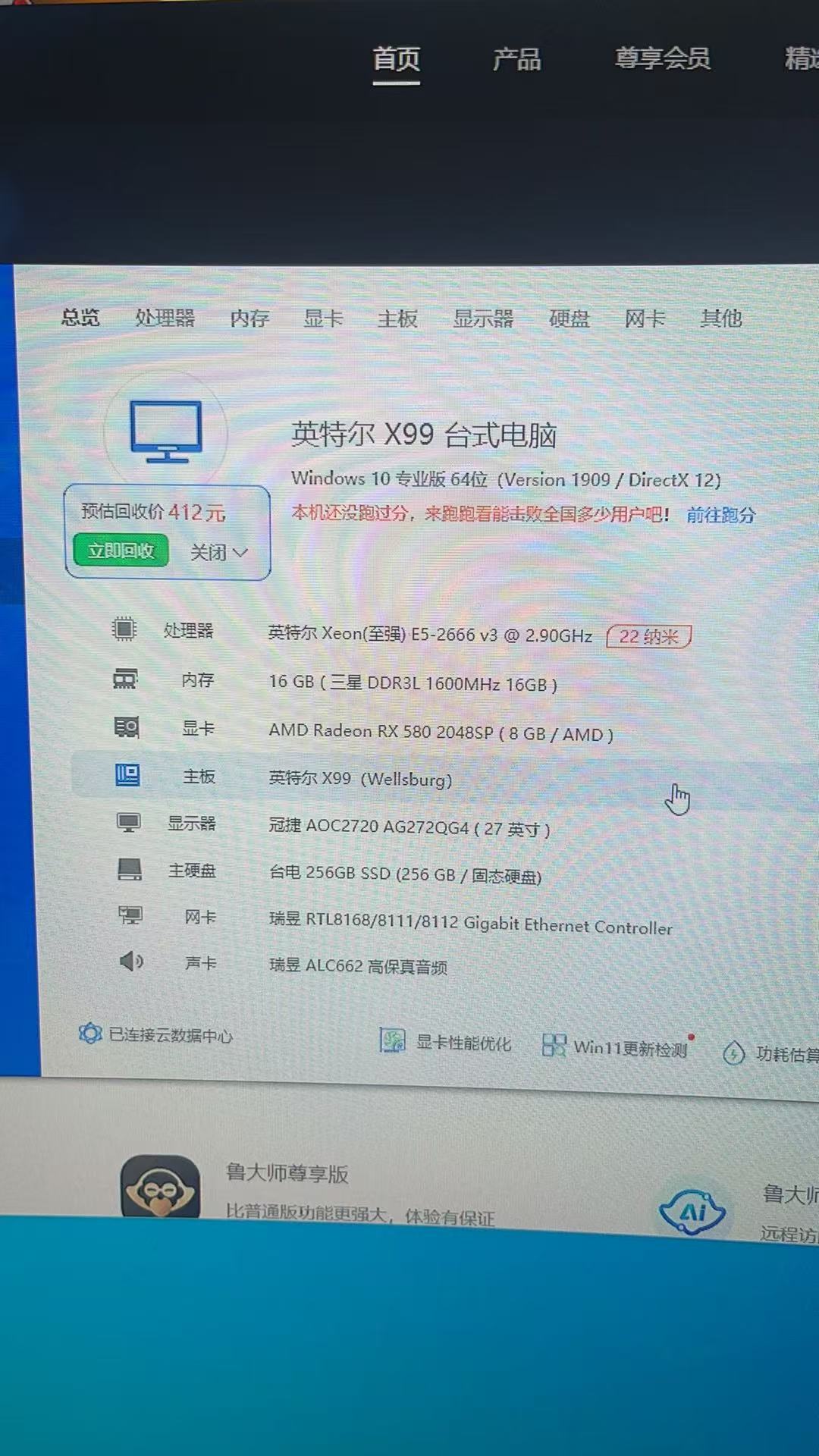 单电脑主机:cpu e5 2666 显卡Rx 580 8G, 内存32G,256固态硬盘,价格900。另有一体i3 8100办公电脑8g内存,256固态硬盘,24寸显示器800不议价